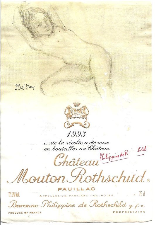 Chuyện nhãn vang bên trên được BATF cho phép khó có thể do họ đã cởi mở hơn, vì chỉ một năm trước đó, một nhãn vang tương tự của loại vang Mouton Rothschild 1993 đã bị từ chối. Xét về hình thức, hình ảnh trên các nhãn vang này là tương tự nhau, cùng là những đường nét đơn giản, phác họa nét đẹp tự nhiên của người phụ nữ. Đáp lại sự bác bỏ của BATF, nhà Mouton-Rothschild, vốn nổi tiếng với những nhãn vang với tranh của các họa sỹ nối tiếng, đã đơn giản xóa bỏ bức tranh của họa sỹ Pháp Balthus, để lại một khoảng trống xấu xí trên những chai vang xuất khẩu vào thị trường Mỹ của họ. Hiện tại, mỗi chai vang loại này có giá khoảng gần 450 USD.