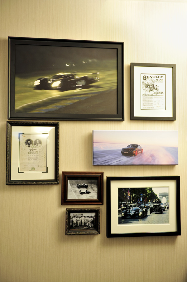 Trên tường treo những bức ảnh đẹp, chụp những khoảng khắc đua xe ấn tượng của những chiếc Bentley cả cũ và mới. Cùng với đó là những phác họa thiết kế xe lấy từ tổng hành dinh.
