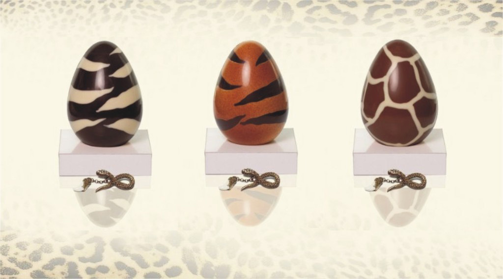 Dòng sản phẩm của Roberto Cavalli được chia thành 3 loại sử dụng sô-cô-la trắng và đen cao cấp làm nguyên liệu chính. Các nghệ nhân đã khéo léo tô điểm họa tiết bắt mắt biến chúng thành những quả trứng như da hươu cao c,ổ ngựa vằn mang hai màu đối lập. Mỗi quả trứng nặng 140gr và có giá khoảng 1,5 triệu đồng (70 USD).