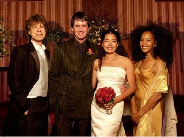 Mick Jagger và Marsha Hunt chụp ảnh chung trong ngày cưới của con gái Karis