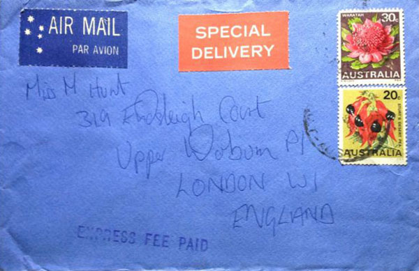 Phong bì thư Mick Jagger dùng để gửi thư cho Marsha Hunt vào thời điểm mùa hè năm 1969, lúc này ông đang tham gia đóng phim tại Australia