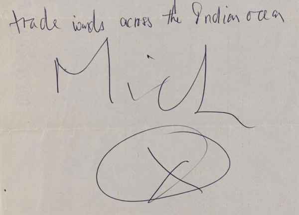 Chữ ký của Mick Jagger ở một trong những bức thư ông viết cho Marsha Hunt