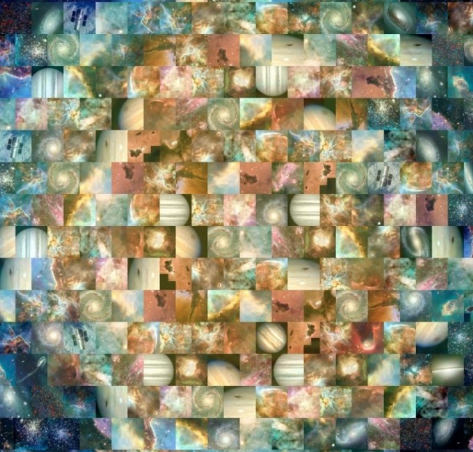 Kính Hubble được phóng lên quỹ đạo năm 1990, kể từ đó Hubble đã góp một phần quan trọng trong những nghiên cứu của Cục Quản trị Hàng không và Không gian Mĩ (NASA). Tiến sĩ Parker đã tiến hành download 100 bức ảnh được chụp từ Hubble và nảy ra ý tưởng ghép chúng lại với nhau theo bức Starry Night.
