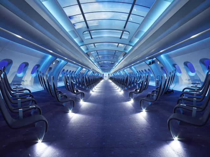 Sân khấu được thiết kế như trên một chiếc phi cơ sang trọng, những dãy ghế dài được xếp gọn gàng. Mới thoạt nhìn, người ta dễ có cảm giác sắp được du hành tới vũ trụ xa xôi. Không gian như chỉ có trong những bộ phim viễn tưởng được tái hiện đẹp mắt.