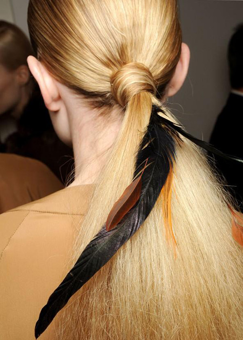 Chúng ta đã từng chứng kiến trào lưu nối tóc lông vũ của các sao Hollywood đình đám. Bắt đầu từ ý tưởng này, bạn hoàn toàn có thể thay lông vũ bằng chuỗi hạt trai nhỏ, sợi ruy băng mảnh hoặc sợi dây chuyền để phần tóc cột trở nên sinh động.