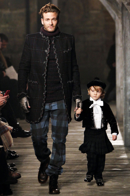 Bên cạnh việc sử dụng vải tuýt và họa tiết kẻ caro truyền thống của Scotland , Karl Largerfeld đã khéo léo phủ lên những mẫu váy “kilt” chất Paris lịch lãm trong mình với chất liệu chiffon và ren gợi cảm. Những mẫu trang sức cầu kỳ, mũ lông vũ, khăn choàng cao cấp và tất hoa văn giúp làm hoàn thiện hơn phong cách quyền quý của giới hoàng tộc, cũng vừa để góp phần tôn vinh chất nghệ thuật đỉnh cao trong bộ gien của thương hiệu Chanel.