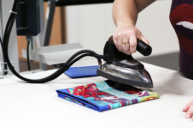 Những chiếc khăn được cắt và chuyển sang công đoạn cuối cùng “roulotté” : cuốn viền khăn – một sự khác biệt của Hermès. Ngược lại hoàn toàn với những chiếc khăn của các nhà mốt khác, khăn lụa Carré của Hermès có viền cuộn lộn ngược từ mặt trái sang mặt phải.