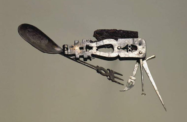 Tuy nhiên, quân đội Thụy Sỹ không phải là những người đầu tiên sử dụng thiết bị đa năng này mà là từ thời đế chế La Mã, thời đại của chiến tranh. Các chiến binh La Mã phải hành quân trên biển trong thời gian dài, họ đã kết hợp giữa dao găm và cán thành một chiếc thìa dùng trong bữa ăn, dao găm dùng để cắt thịt. Từ đó quân đội đã áp dụng phát kiến này cho các chiến binh, giúp họ không cần phải mang theo nhiều dụng cụ cồng kềnh trong quá trình hành quân.