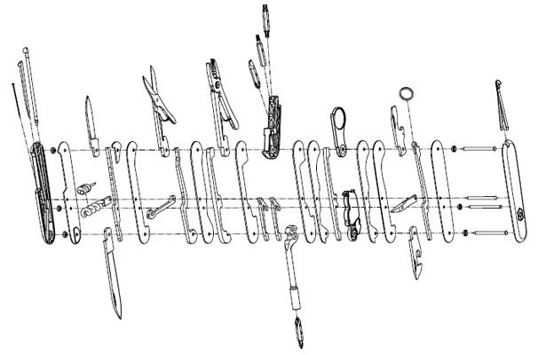 Dao đa năng là ý tưởng đơn giản để giúp người dùng thực hiện được rất nhiều việc, các lưỡi được gấp gọn khít với nhau trong một hình khối nhỏ.