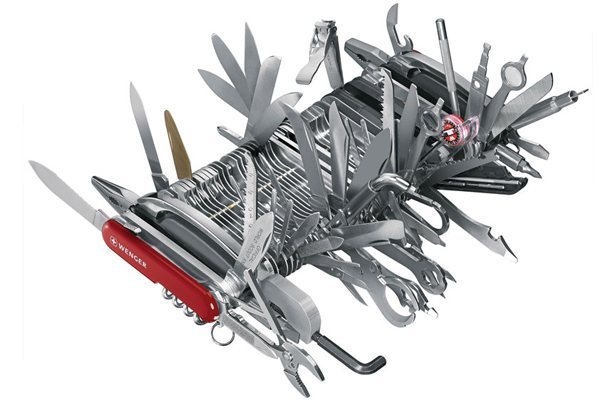 Dao đa năng của quân đội Thụy Sỹ lần đầu tiên được phát triển bởi một công ty Đức vào năm 1891. Nó được trang bị kèm theo một vài công cụ như: dao, đồ khui đồ hộp, lưỡi cưa, thậm chí là một chiếc kính lúp… Nó là sự kết hợp của vẻ đẹp và các thiết kế, các chi tiết nhỏ nhưng nhiều, có thể mở và đóng một cách rất đơn giản.