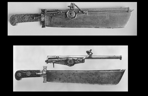Một thiết kế vũ khí kết hợp đao và súng của Đức vào thế kỷ 16. Trên lưỡi dao có khắc lịch.