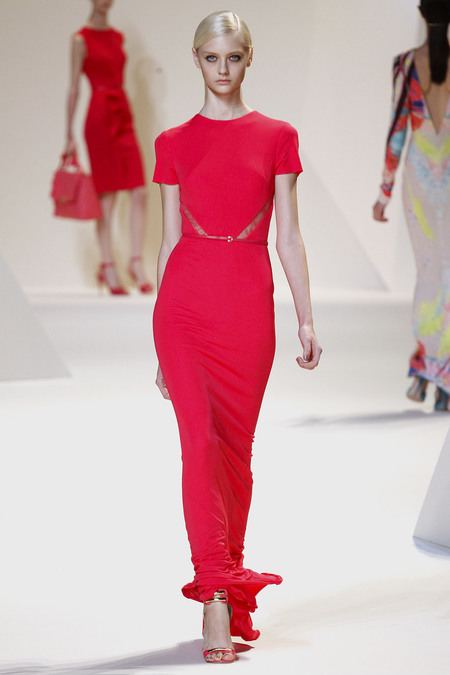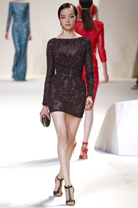 Dành cho buổi tối, Elie Saab muốn tôn vinh vẻ kiều diễm của những cô gái với dáng váy ngực cao, khoe được phần eo thon thả và dáng chân dài. Ngoài những cách làm nổi bật vẻ lộng lẫy truyền thống với những bộ váy kết kim sa, lần này ông đã sử dụng kỹ thuật đáp ren hình học để tạo điểm nhấn gợi cảm tại chính những đường cong tuyệt mỹ nhất của phụ nữ.