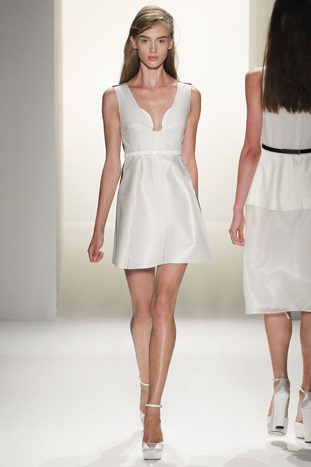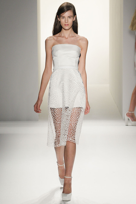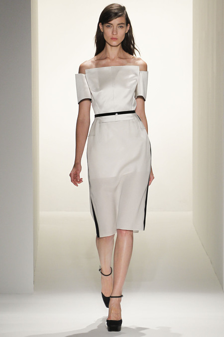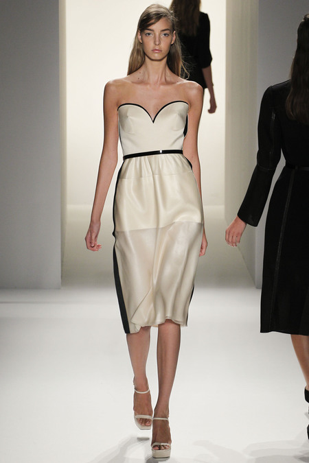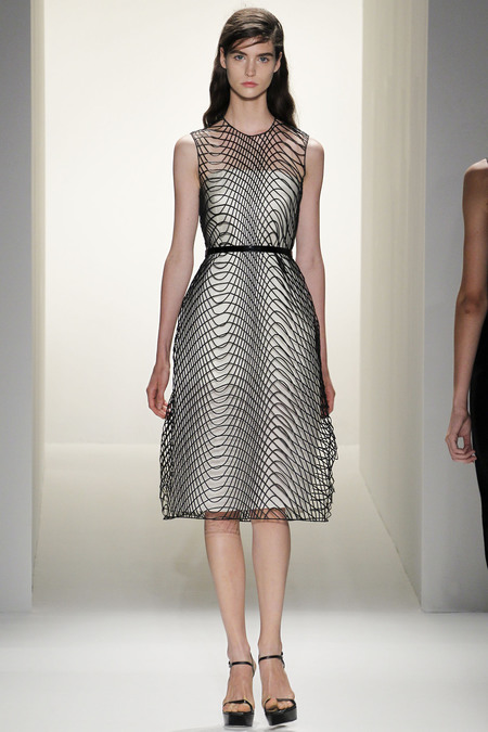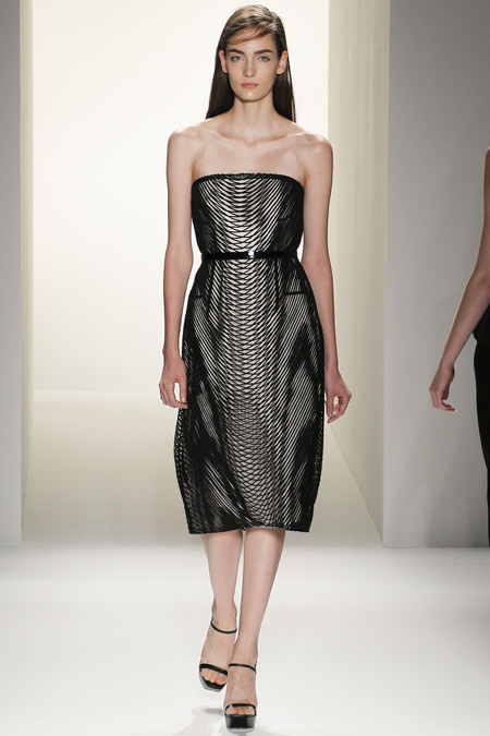 Ngoài mục đích tôn vinh nét duyên trong hình thức , Francisco Costa còn muốn tôn vinh vẻ đẹp trí tuệ của phụ nữ và anh đã chọn những cách thức thể hiện rất độc đáo cho thông điệp này của mình: sử dụng dải lưới màu đen trên nền váy trắng để tạo hiệu ứng thị giác ảo ảnh, những đường viền ngực theo dạng đồ thị parabol… Ứng dụng hình học trong thiết kế váy tạo nên sự bất ngờ trong từng bộ trang phục.