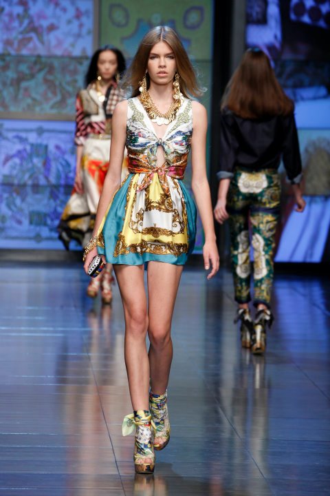 BST giày xuân hè 2012 của D&G được nhà phê bình đánh giá là sự kết hợp hài hòa với BST trang phục xuân hè 2012 của hãng này. Quần áo, váy, phụ kiện và giày dép đều sử dụng cùng một chất liệu vải và được thiết kế với các họa tiết tương tự nhau. BST bao gồm những đôi giày đế xuồng và giày búp bê màu sắc sặc sỡ với các hoạ tiết in hoa làm điểm nhấn.