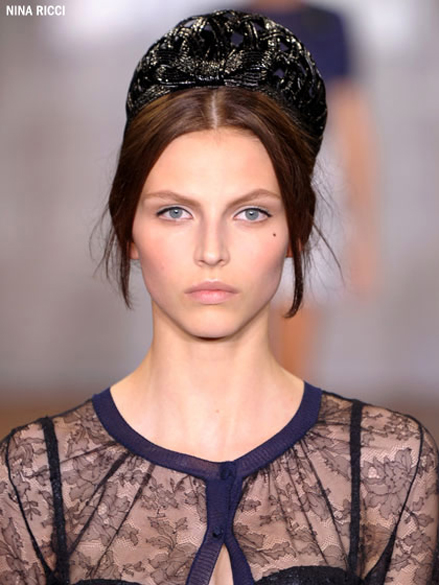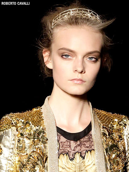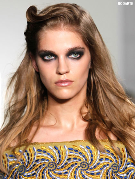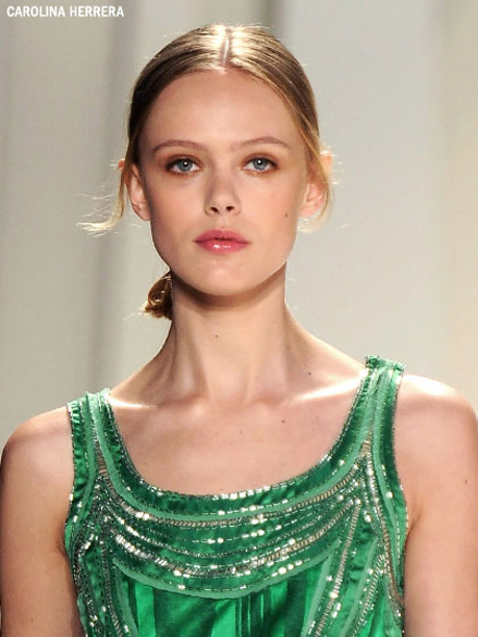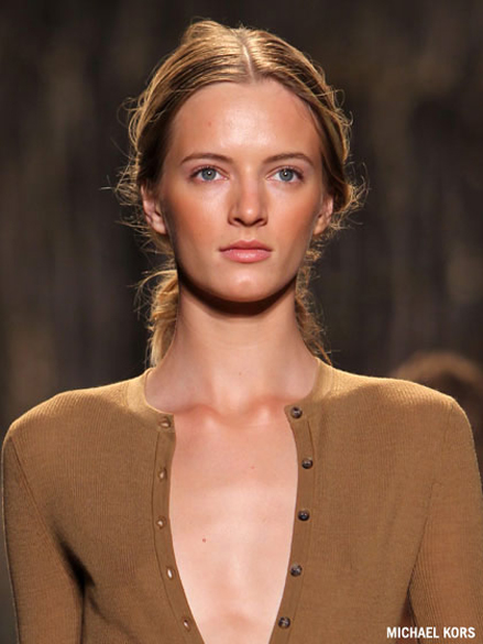Nếu bạn không có một đôi mắt xinh đẹp biết nói thì phấn bóng kim loại màu đồng đất có thể giúp bạn tạo ra sự lôi cuốn tương tự. Xoa phấn bóng màu đồng lên phía trên mí mắt và dưới mắt, sau đó chuốt mascara và tô son màu nude (đây là xu hướng chủ đạo trên sàn diễn thời trang mùa xuân 2012).