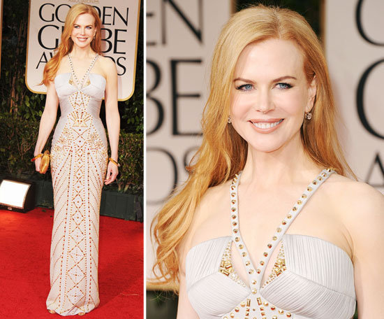 Nicole Kidman khoe số đo 3 vòng hoàn hảo của mình với chiếc váy óng ánh mang thương hiệu Versace.