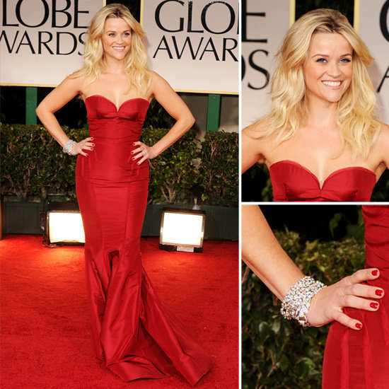 Chiếc váy màu đỏ của Zac Posen thực sự rất nóng bỏng với vóc dáng nhỏ nhắn của Reese Witherspoon.