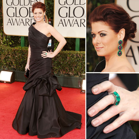 Debra Messing cùng chiếc váy vai lệch màu đen sang trọng của Monique Lhuillier.