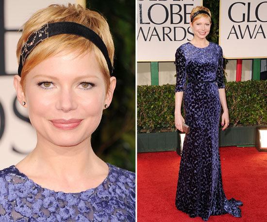 Michelle Williams trông xinh đẹp và cổ điển trong bộ đầm dài có kiểu dáng T-shirt hiệu Jason Wu – lần đầu tiên nhãn hiệu này xuất hiện trên thảm đỏ giải Quả cầu vàng.