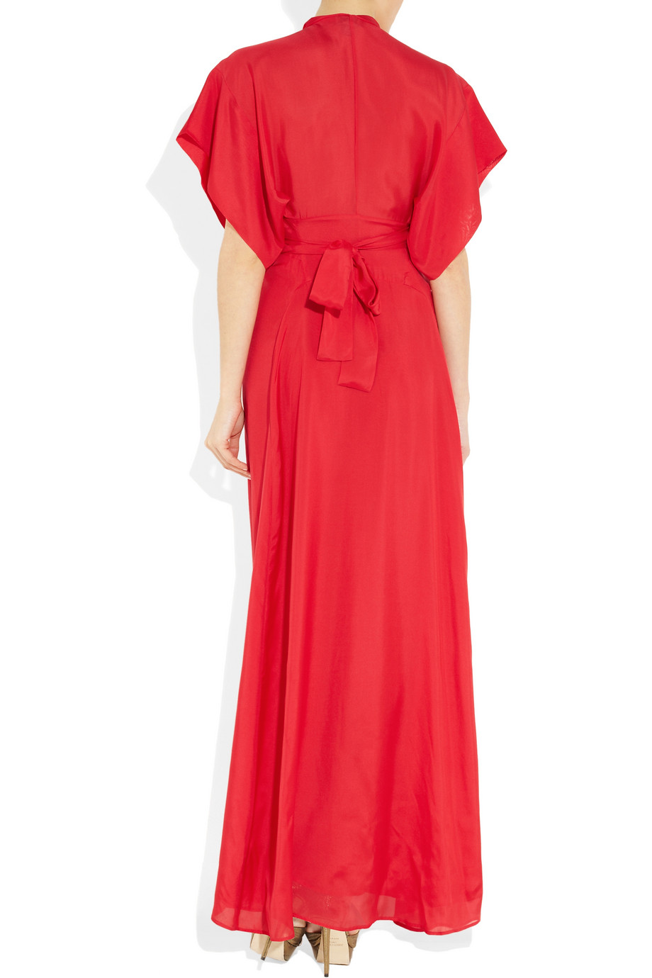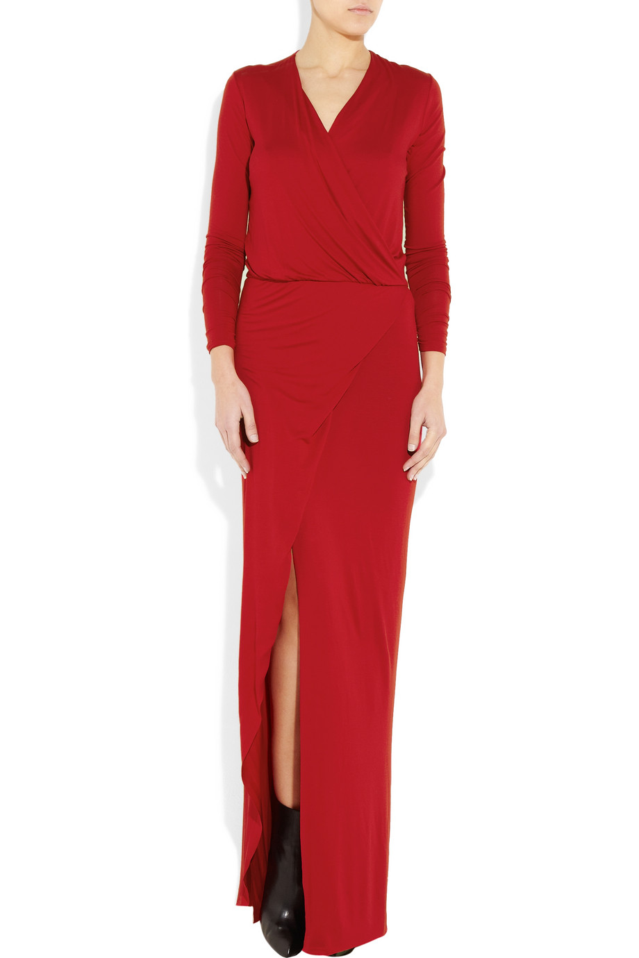 Váy đỏ với những đường phéc-mơ-tuya chạy dọc theo thân ấn tượng của Amanda Wakeley (20 triệu đồng)