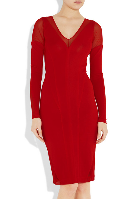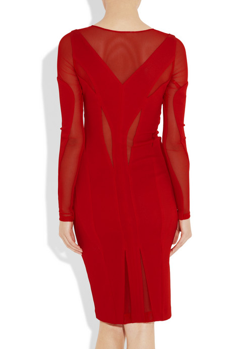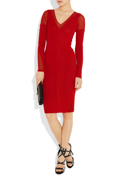 Váy đỏ với những đường cắt pha ren quyến rũ của Donna Karan (46 triệu đồng), có thể kết hợp cùng giày họa tiết da ngựa vằn của Jimmy Choo (25 triệu đồng)