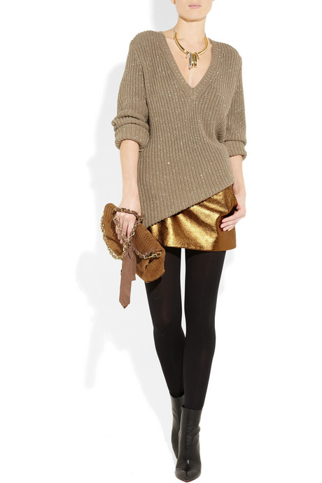 Chân váy màu chocolate của rag & bone (20 triệu đồng) – Áo ánh kim rag & bone (7 triệu đồng)
