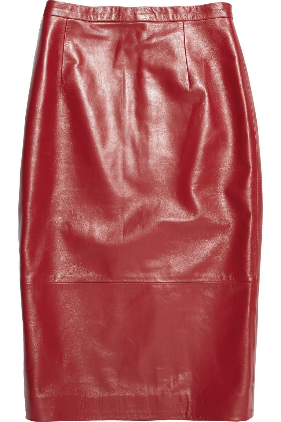 Váy da đỏ Tibi (16 triệu đồng) – Áo sơ mi trắng Elizabeth and James (9 triệu đồng)