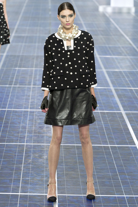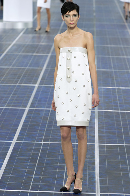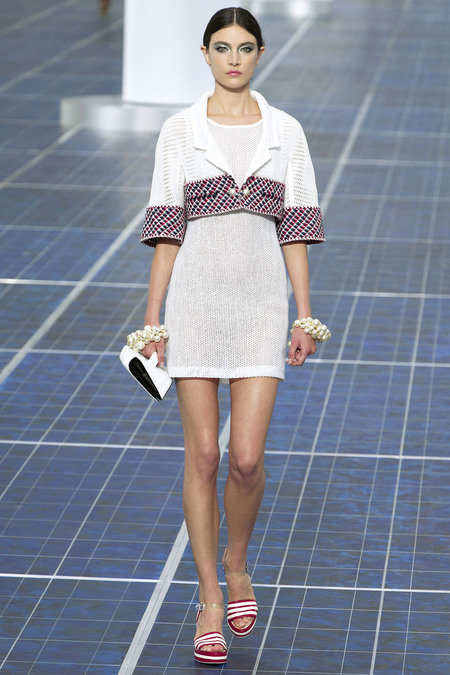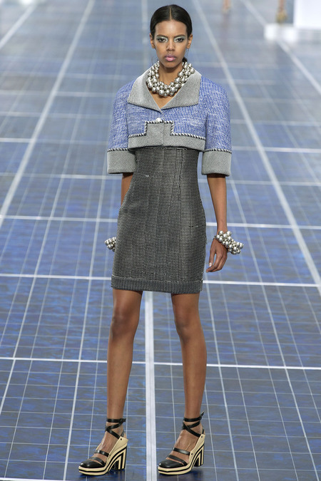 Người ta vẫn nhận thấy những chi tiết truyền thống của Chanel như ngọc trai, vải ca rô, viền to bản nơi cổ và tay của trang phục. Thế nhưng đã có một cuộc đột phá độc đáo: kỹ thuật cắt cúp 3D trên vải chiffon tạo đường khối nhẹ nhàng và thanh thoát cho váy (thay vì kiểu tạo khối hộp và nặng nề cũ).