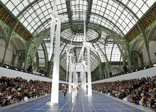 Toàn bộ sàn diễn được thiết kế với với những cánh quạt gió của cánh đồng phong điện và những tấm năng lượng mặt trời. Nhà thiết kế lý luận : “Bởi gió và mặt trời hoàn toàn miễn phí”, khi giới thiệu về ý tưởng sàn diễn của mình.
