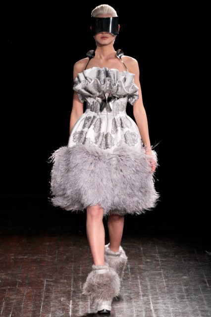 Kiểu dáng trang phục và hoa văn trên vải là yếu tố “bùng nổ” của bộ sưu tập, với những chiếc váy mô phỏng hình củ lạc, được trang trí với họa tiết thêu cầu kỳ. Nhà thiết kế đã sử dụng những chất liệu lông nhẹ như lông cừu, lông đà điểu để tạo ra cảm giác về một tương lai êm đềm : “như những cánh hoa bồ công anh nhẹ nhàng bay theo làn gió”.