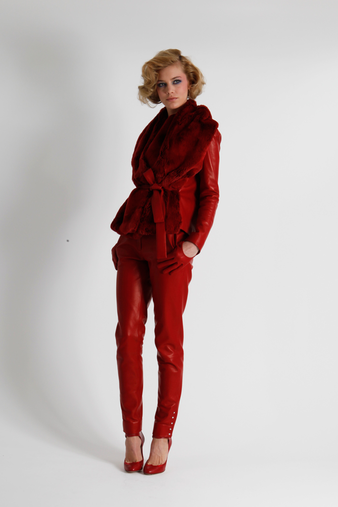 Vẻ đẹp cổ điển của chiếc áo đỏ viền lông Azzaro