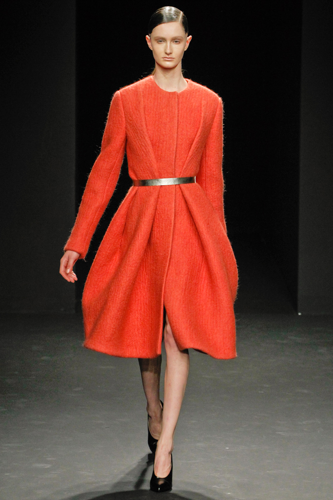 Mẫu áo dạ cao cấp được tạo điểm nhấn với thắt lưng kim loại của Calvin Klein Collection
