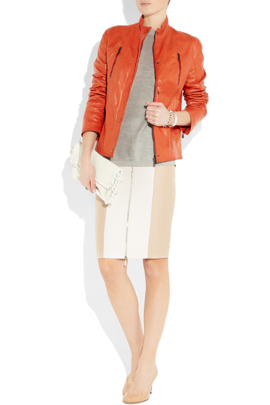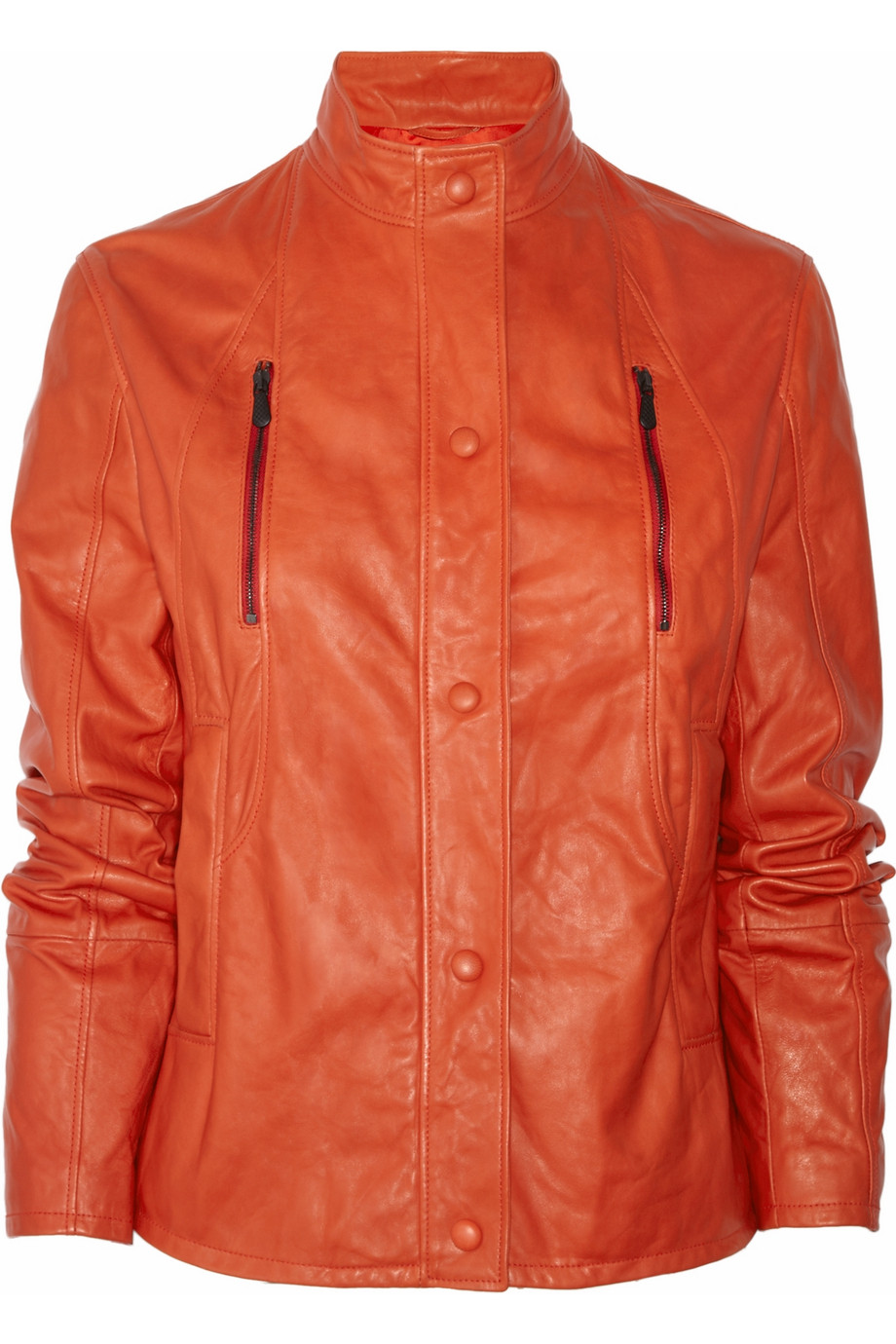Áo khoác da màu cam tươi trẻ của Bottega Veneta (125 triệu đồng)