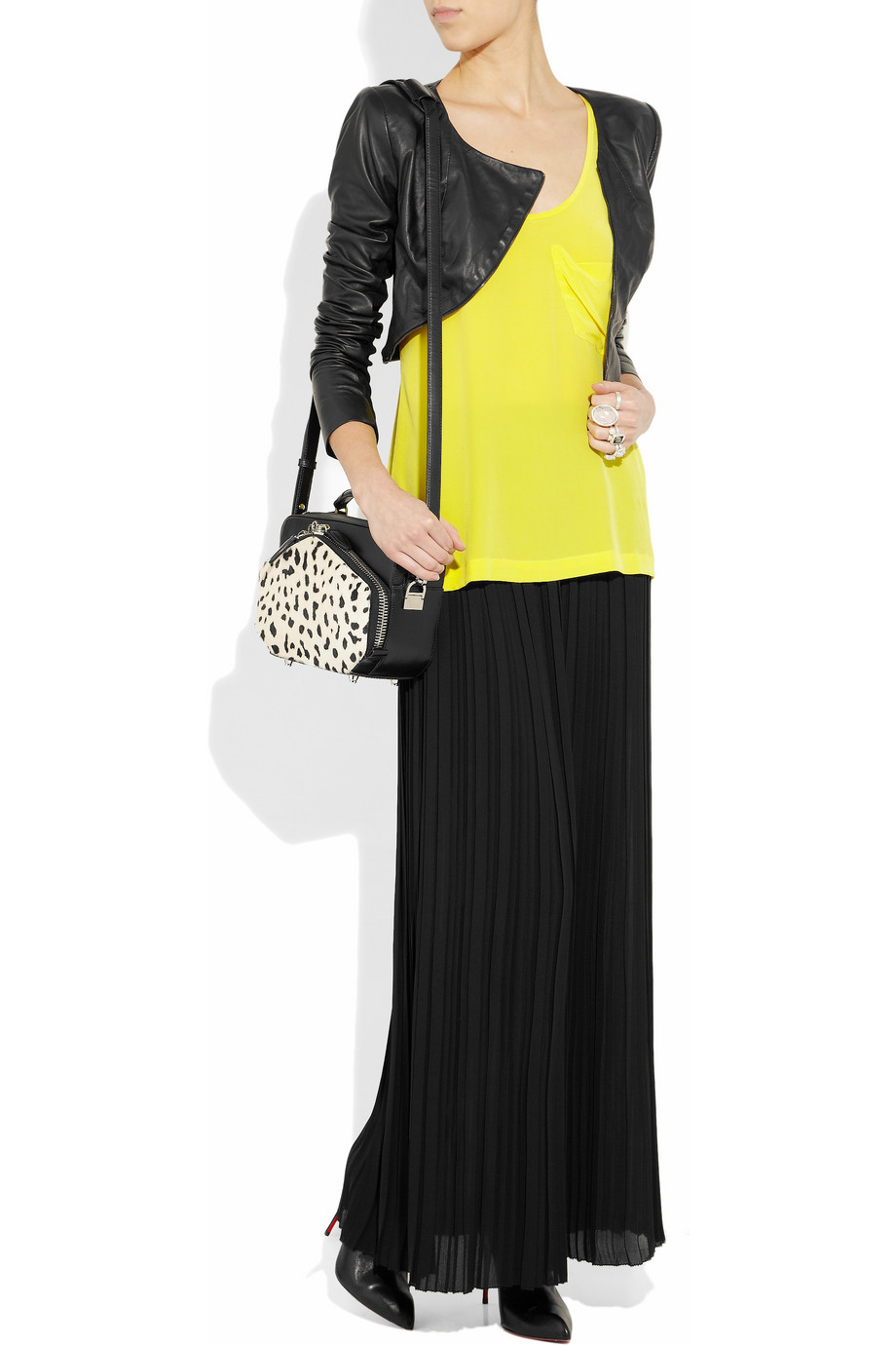 Áo khoác da biker phong cách color-block của DKNY (24 triệu đồng)