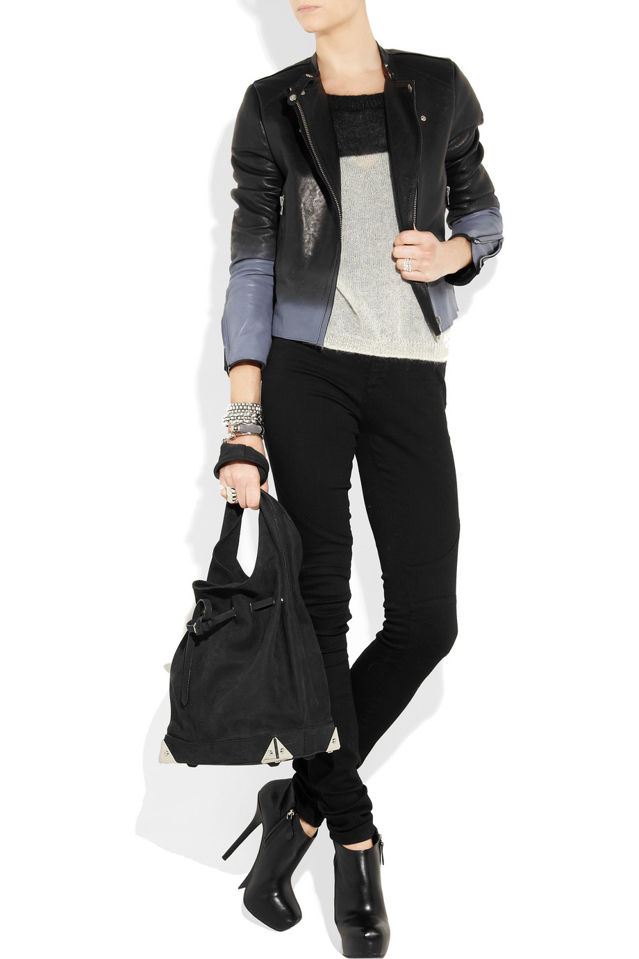 Áo khoác biker 2 màu trắng đen của Jason Wu (45 triệu đồng)