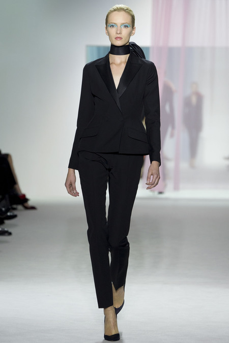 Trái ngược với tinh thần lãng mạn mà John Galliano đã xây dựng khi còn làm việc cho thương hiệu Christian Dior, Raf Simons lại muốn mang đổi mới với vẻ nghiêm nghị pha lẫn chút cứng nhắc cho những quý cô trong mùa Xuân Hè này. Le Smoking đen kết hợp với những đường nét tạo hình tinh xảo ở vạt áo đã được lựa chọn để thể hiện vẻ đẹp mạnh mẽ và lịch lãm mà nhà thiết kế muốn chuyển tải.
