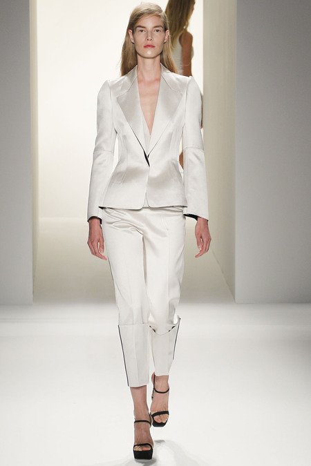 Trong quá trình làm việc, gặp gỡ trực tiếp với những khách hàng thân thiết trên khắp các châu lục, Victoria Beckham đã nhận ra một nhu cầu lớn với những mẫu trang phục đa dạng và nam tính hơn kiểu váy liền dáng bó sát gợi cảm của thương hiệu; do vậy trong bộ sưu tập Xuân Hè năm nay, cô đã cho ra mắt những bộ đồ rời, dáng thụng hơn. Những thiết kế của cô cũng theo xu hướng tối giản, với màu sắc đơn không họa tiết in. Chất liệu được sử dụng là vải thô, vải nhiễu, chiffon và ren. Nhưng cũng thật khó để người có phong cách gợi cảm và nữ tính như Victoria Beckham chỉ tập trung vào trang phục nam tính, nên cô đã tạo điểm cân bằng cho bộ sưu tập của mình với những mẫu áo vest hở, mặc kết hợp với áo lót đơn cùng màu.