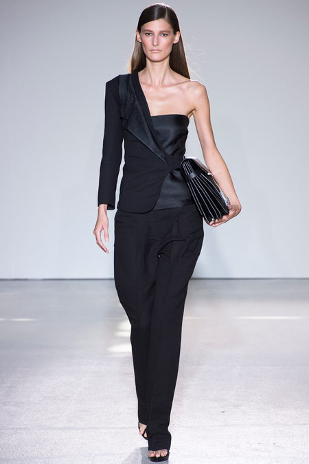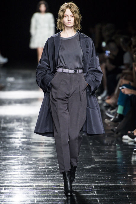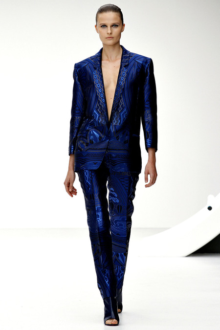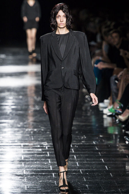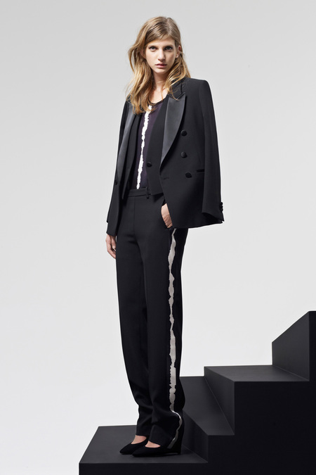 Bộ sưu tập của Theyskens’ Theory phần nào phản sự ám ảnh của nhà thiết kế Olivier Theyskens với đại dương sâu thẳm, thể hiện qua mái tóc ướt nước của các cô người mẫu, và hai màu sắc duy nhất trong bộ sưu tập: xanh nước biển đậm và đen. Để tạo vẻ nam tính cho trang phục, nhà thiết kế đã tiết chế những đường xếp ly trên áo vest, tạo điểm nhấn với cầu vai rộng hơn. Đây là cách thiết kế trang phục lý tưởng để dấu dáng người.