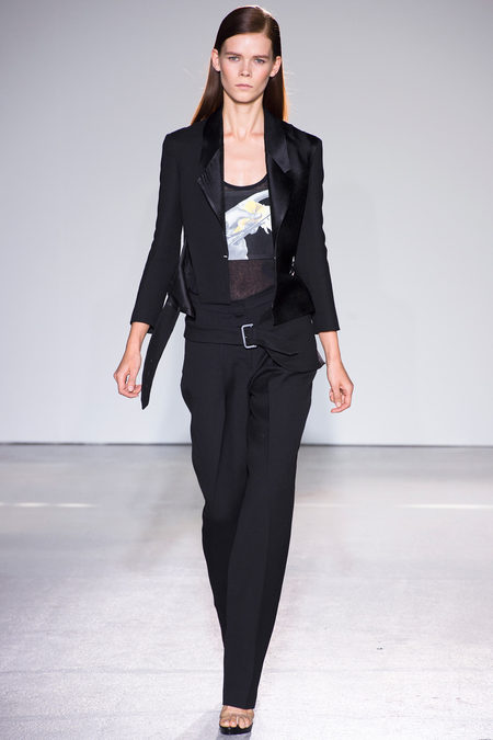 Một thành phố với những tòa nhà cao chọc trời, những chiếc xe hơi sang trọng là cảm hứng chính cho bộ sưu tập của Calvin Klein. Francisco Costa đã vận dụng những mẫu khung của các siêu xe, kết hợp với màu sắc trung tính như trắng, kem, đen để tạo hình ảnh những cô gái thành thị hiểu biết, giỏi giang, hiện đại nhưng có nét lạnh lùng.