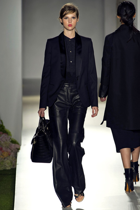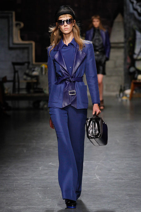 Kiểu dáng áo nam tính mạnh mẽ của Mulberry xuất phát từ mẫu áo jacket của dân đua xe. Bên cạnh đó, túi xách to bản cùng tông màu trang phục cũng là món phụ kiện cần thiết được thương hiệu giới thiệu, đặc biệt phù hợp cho những cô nàng bận rộn với trăm công nghìn việc và phải “rong ruổi” khắp nơi cả ngày dài.