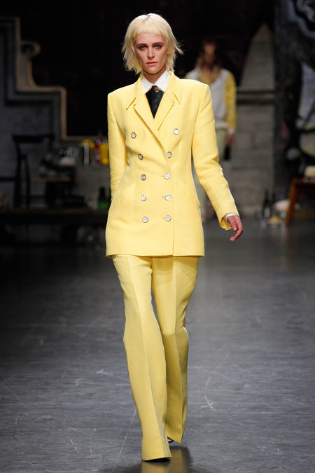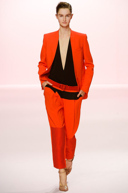 Cũng mang tinh thần Rock Punk của thập niên 70, nhưng Jonathan Sauders muốn khắc họa hình ảnh những cô nàng đầy nữ tính đang cố gắng bắt chước cho ra vẻ nam tính một cách khờ khạo: áo vest dáng thụng mang họa tiết và màu sắc lòe loẹt, được mặc với áo lót hớ hênh. Hệ quả là: sự ngây ngô và gợi cảm của các cô nàng đã tạo hiệu ứng đặc biệt giúp thu hút mọi sự chú ý ngay từ cái nhìn đầu tiên.