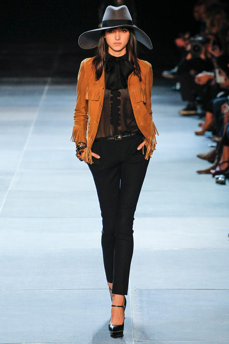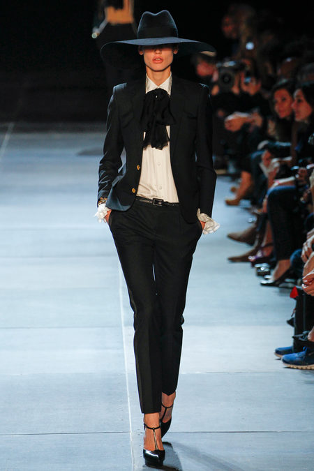 Nét gàn dở trong phong cách của dòng nhạc Electronic Punk đã được nhà thiết kế Hedi Slimane khai thác để đưa vào bộ sưu tập Xuân Hè năm nay, kết hợp cảm hứng từ những bộ le smoking nổi tiếng của nàng thơ, người mẫu Betty Catroux. Le Smoking được mặc với dáng quần legging đã tạo nên nét chấm phá độc đáo. Những chiếc mũ đội đầu tối màu, vành rộng, rủ xuống phần mặt khiến cho người xem có cảm giác như đang theo dõi một buổi triệu tập của những mụ phù thủy.