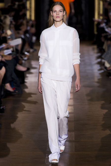 Bộ sưu tập là sự đối thoại giữa phái mạnh và phái yếu, giữa sự gan dạ và nét mong manh trong tính cách. Đó là những gì Stella McCartney muốn dành cho tuýp phụ nữ yêu thích thương hiệu của mình. Cô giới thiệu những trang phục năng động kiểu dáng thể thao với mẫu quần thụng, dài hoặc rộng nhưng được cắt gấu cao trên mắt cá chân nhằm đem lại sự thoải mái khi vận động. Dáng áo với tạo hình khối hộp ở phần thắt lưng tôn thêm vẻ khỏe khoắn, năng động cho người mặc.