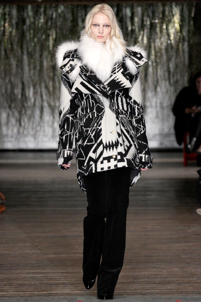 Những mẫu áo khoác của Altuzarra được thiết kế từ chất liệu dạ, lông, băng lông cao cấp. Lấy ý tưởng từ hoạ tiết dệt truyền thống của đất nước Morocco, nhà thiết kế đã thổi một chút không khí nóng bức của vùng đất sa mạc vào mẫu thiết kế cho mùa đông lạnh giá của mình.