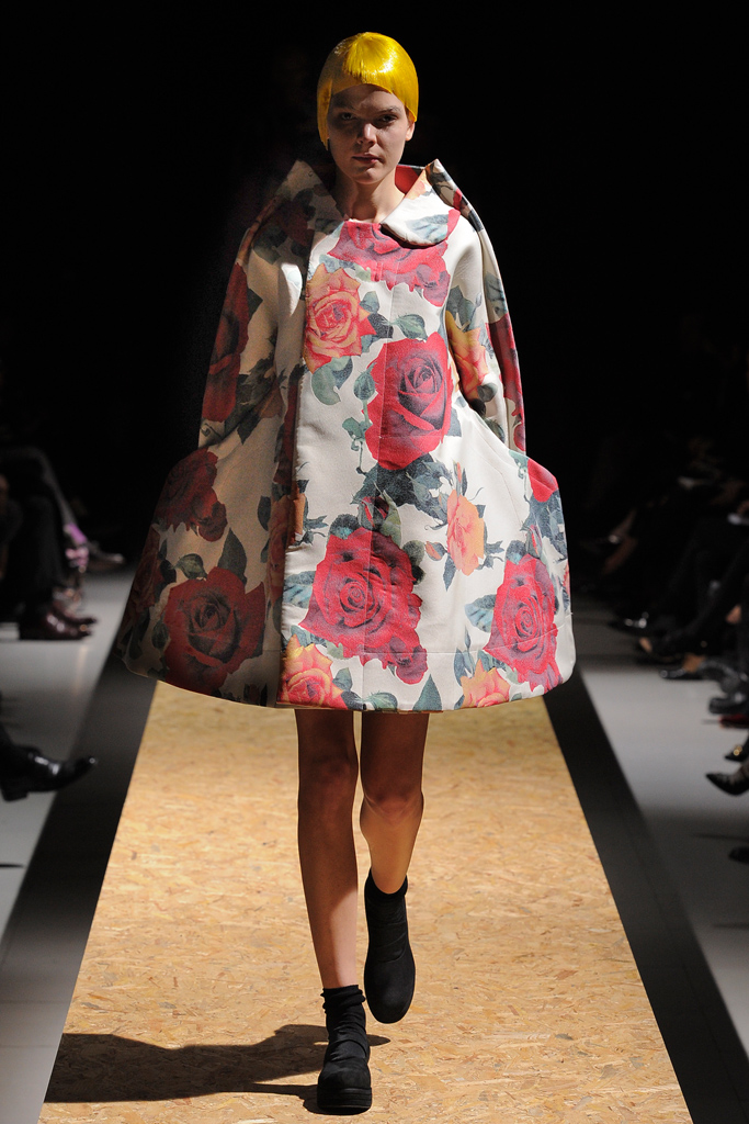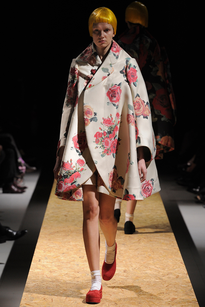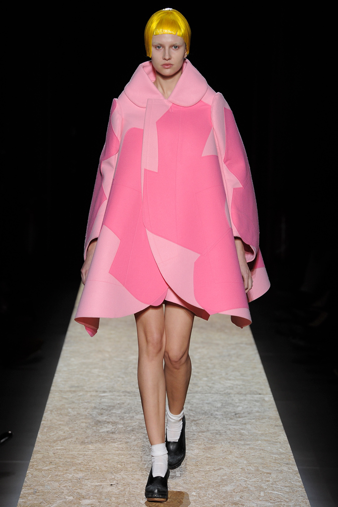 Những thiết kế vô cùng độc đáo của Comme Des Garcons lấy cảm hứng từ trang phục búp bê xinh đẹp với màu sắc tươi sáng đã làm sáng bừng lên không gian của buổi trình diễn thời trang Thu Đông. Nhà thiết kế còn tạo ấn tượng với thiết kế theo không gian hai chiều với những chiếc áo khoác nguyên mẫu vải tối giản đường cắt may.