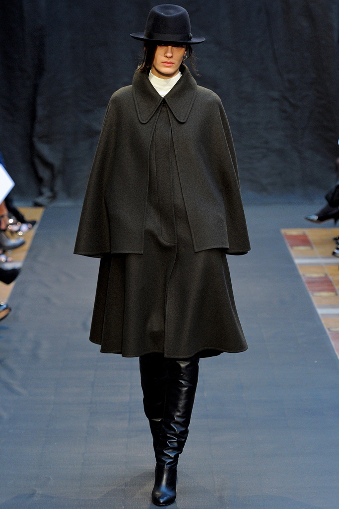 Sự kết hợp giữa hai chất liệu lông và dạ nỉ tạo nên những thiết kế nổi bật cho thương hiệu Max Mara. Cảm hứng từ quân đội cũng thấp thoáng ẩn hiện trong các mẫu thiết kế áo khoác, tạo nên vẻ cá tính và tự tin cho phái nữ.