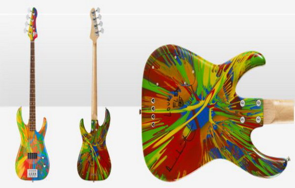 Nghệ sĩ nổi tiếng Damien Hirst vừa kết hợp với tay bass Flea của ban nhạc Red Hot Chilli Peppers, ra mắt dòng guitar bass sản xuất hạn chế mang tên Spin Bass Guitars với phong cách thiết kế mang đậm dấu ấn “Hirst”.