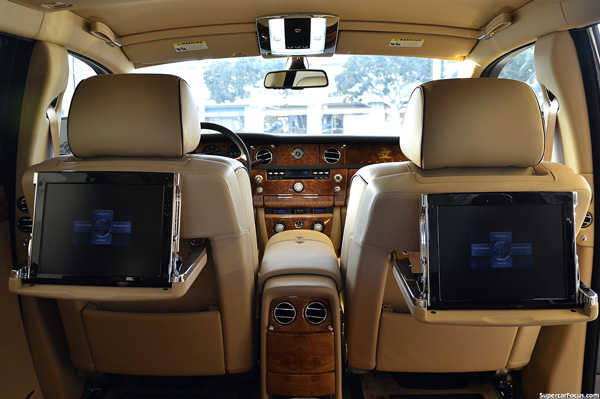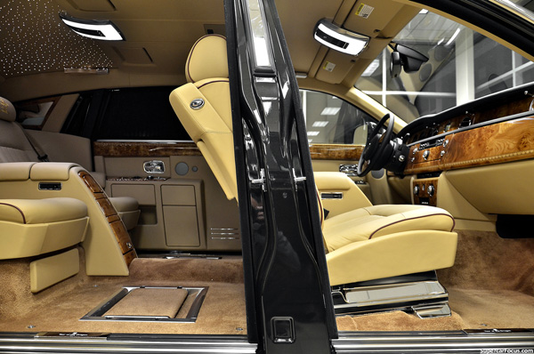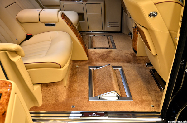 Khoang sau được thêu tổng cộng 8 hình rồng, có sẵn kệ để đặt ly và champagne, trên là trần với một “bầu trời đầy sao”. Sau cốp xe có két sắt an toàn.