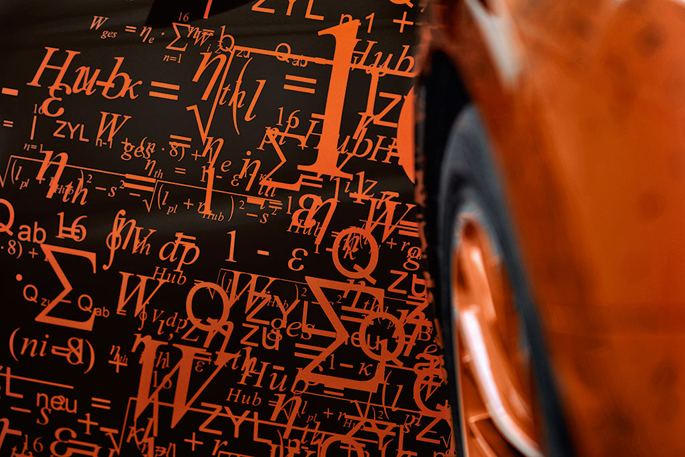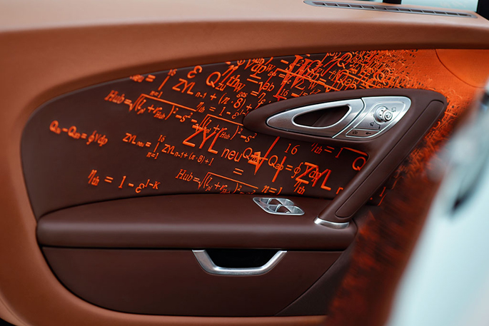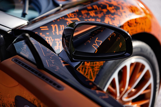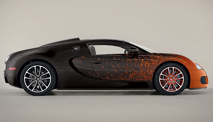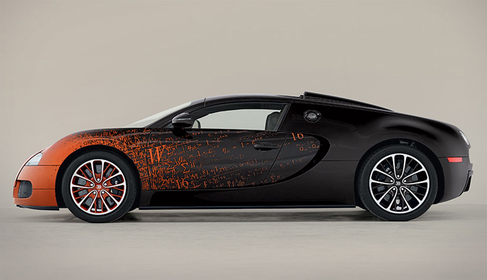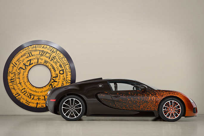Venet dùng con số, công thức khoa học và phương trình toán học để trang trí cả bên trong và bên ngoài chiếc xe, khiến người ta liên tưởng đến bức tranh toán học nổi tiếng hiện đang được trưng bày tại Art Plural Gallery ở Singapore. Điều thú vị nhất là những phương trình và công thức trên lớp phim bọc xe chính là những gì các kỹ sư của Bugatti dùng để phát triển Veyron. Một đặc điểm khác mang đậm đặc trưng nghệ thuật của Venet là màu sơn thể hiện sự gỉ sét dần dần của kim loại, tạo nên hai tông màu sơn đặc biệt trên Bugatti Veyron.