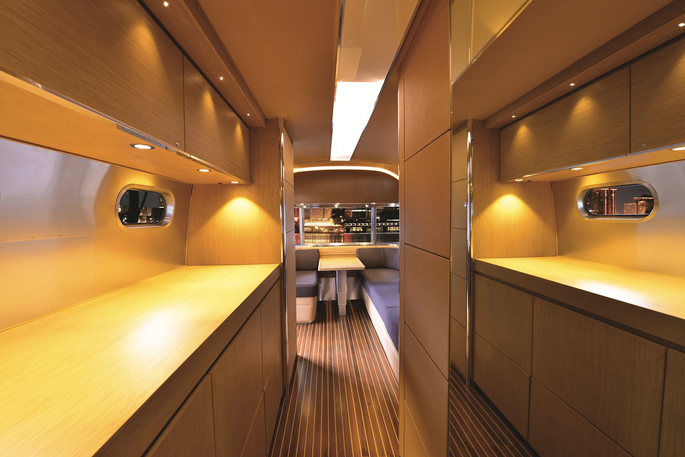 Land Yacht cho cảm giác giống như nội thất của một chiếc du thuyền hàng triệu đô la – ngoại trừ việc nó chạy trên đường bộ bằng một xe đầu kéo.